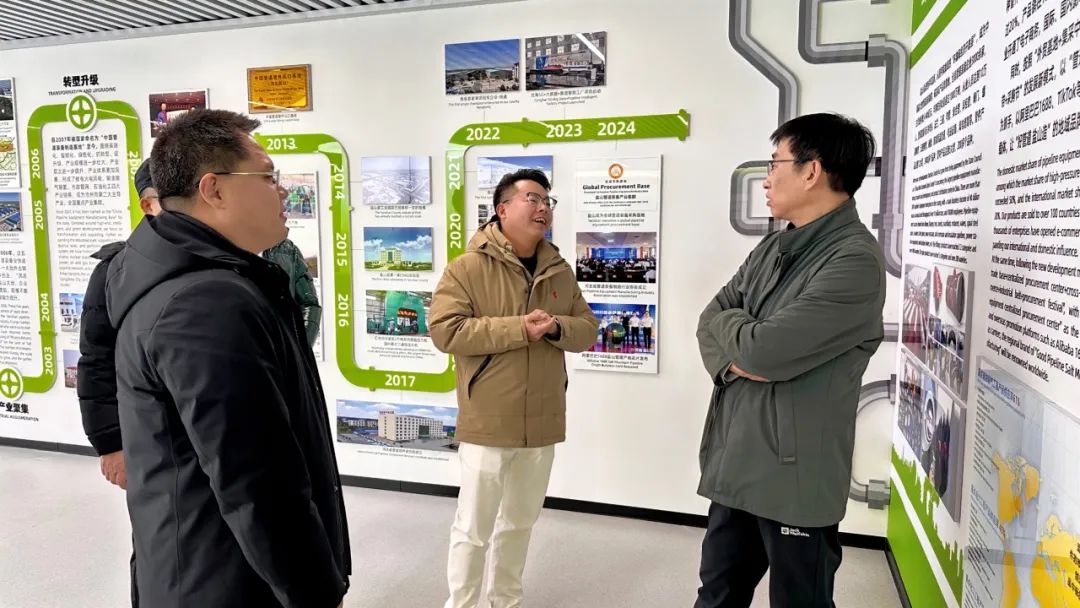 市领导团队到访盐山管道装备集采中心,实地察看项目建设进展,详细了解产业发展和企业生产运营、工艺流程、科技创新、技术研发等情况。盐山管道装备集采中心及大迈出海团队,向市委书记康彦民汇报产业出海成果。